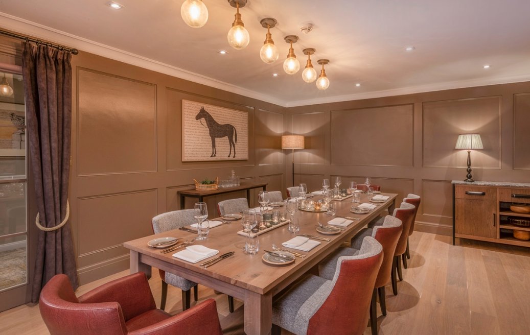Rich with history, this grand and ethereal space is popular as a venue for drinks receptions, larger business meetings and dinners. The original stone fireplace takes centre stage, with the huge bay window offering views across the lawns. The doors lead down stone steps to the Lily Pond and Secret Garden beyond, giving guests the chance to stretch their legs and enjoy summer lawn games, BBQs and al fresco drinks receptions. The Drawing Room can accommodate 80 people theatre style, 60 for a banquet and 80 for a drinks reception.